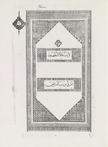 The text is following an Ottoman edition of the Qurʾān as was the practice of the time.[1] There are very few copies of this edition in circuilation and it may be an edition that was printed for 1867 Paris world fair which Būlāq press participated in.[2] Dr. Ahmad Mansour and Dr. Mohamed Hasan were kind enough to provide a picture of the colophon of the copy that is available at Biblioteca Alexandria as the scan of archival copy that is housed at Princeton University library was missing that colophon. It is a 13 line per page and approximately 10 words per line. It does not page numbers, nor any headers, it does have catchwords, it does have the juz numbers in the margins. More importantly it doesn’t have aya numbers but the space is there so it seems either that the printers didn’t agree on a stop marker or that they did not do numbers in the production process. Another comment is that the separate words are at times more often than not, too close together leaving very little space if any at all there by making it harder to read.